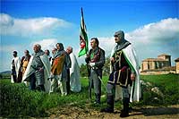 La cita con los figurantes tuvo lugar una luminosa y fresca mañana en el salón del Ayuntamiento. Por suerte, para ambientar las escenas medievales no hizo falta alquilar los trajes de época: se rescataron los de las Fiestas en Honor de Rodrigo Díaz de Vivar, durante las cuales se celebra la «semana cultural cidiana», del 5 al 9 de julio. «Este año habrá una exposición de miniaturas medievales, una conferencia del experto en el «Cantar» Timoteo Riaño, una fiesta infantil, una cena medieval con representaciones teatrales del Cantar y la entrega del Tizonazo, galardón que premia la labor de difusión de la figura del héroe», explica la alcaldesa de Vivar, Ana María Marín, del PP (sobre estas líneas, en el centro).
